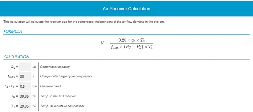 Hea rusikareegel õhumahuti valimisel on lubada 3–4 gallonit õhku CFM voolukiiruse kohta või 10–15 liitrit suruõhku liitri kohta sekundis, olenevalt kasutatava õhukompressori tüübist ja rakendusest. Sarnaselt õhukompressori valikuga tuleks oma süsteemi jaoks sobivate õhuvastuvõtja paagi spetsifikatsioonide kindlaksmääramisel arvesse võtta mitmeid tegureid. Järgmised tegurid on tungivalt soovitatavad: