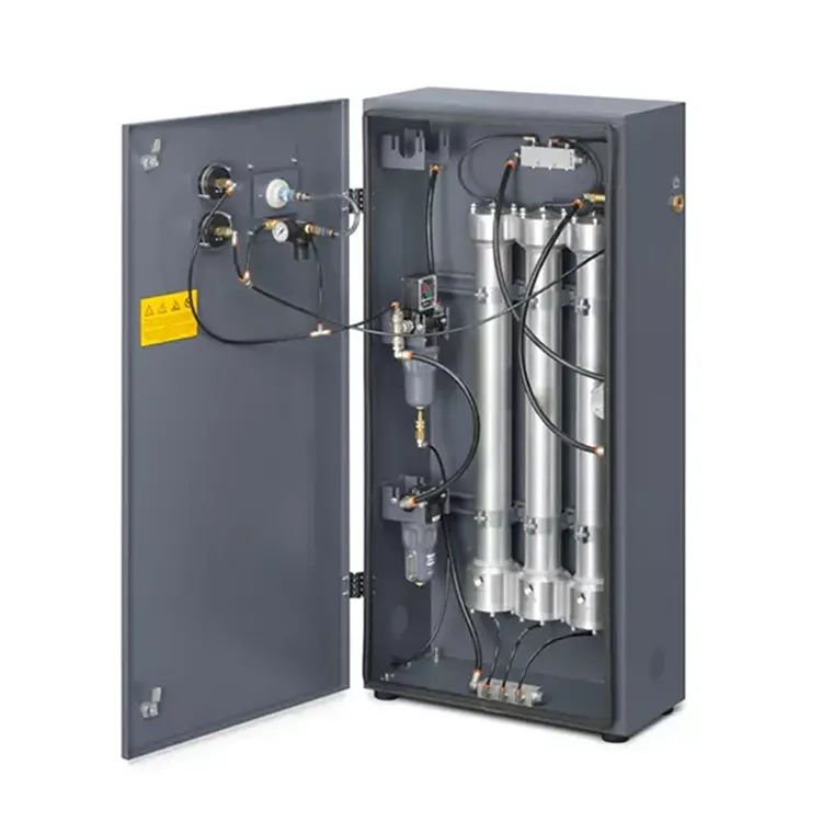 Membraaniga integreeritud lämmastikugeneraator eraldab kompressoriga toidetavast õhust N₂, nii et seda saab kasutada professionaalsetes rakendustes. Suruõhk surutakse läbi õõneskiududega täidetud membraani. Hapnik ja veeaur hajuvad läbi kiuseinte ja juhitakse välja. See jätab kiudude sisse ainult väga kuiva lämmastiku, mis lükatakse membraani teisest otsast välja ja on kasutamiseks valmis. Oleme professionaalne õhukompressorite tootja ja tarnija Hiinas. Tere tulemast konsulteerima ja ostma.