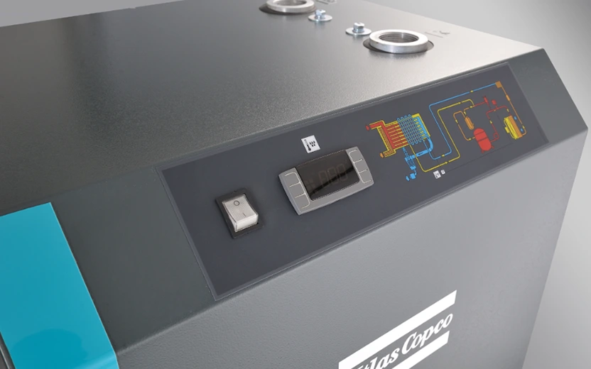 Atlas Copco F-tüüpi külmõhukuivati kasutab kolm-ühes soojusvahetit, mis ühendab endas õhu/õhu, õhu/külmaaine ja vee eraldajad. See eemaldab tõhusalt pärast jahutamist eraldatud vedela vee ja eeljahutab suruõhku, parandades soojusvahetuse efektiivsust.
