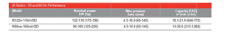 Meie järgmise põlvkonna R-seeria kompressor sisaldab täiesti uut tipptasemel õhuseadet, mis teeb sellest teie parima jõudluse valiku. Uus tihend parandab tõhusust mitmete täiustuste, sealhulgas optimeeritud rootoriprofiili abil, mis aitab minimeerida tegevuskulusid.